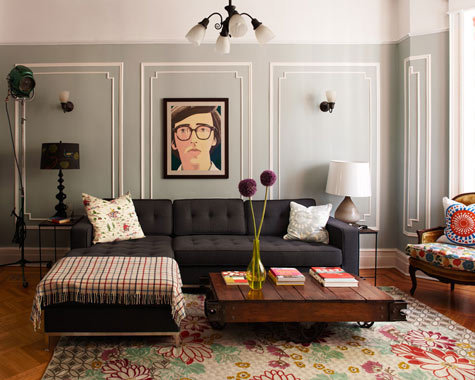 BUHARDILLA: Mesa de centro baja, de Orquidia. Sofá rinconero de Cado. Alfombra, en la misma tienda.
